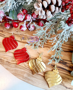 2 inch Mirrored Embossed Antique Stripe & Swirl Ornament Bulb Double Layer Christmas Earrings Steel Rule Die