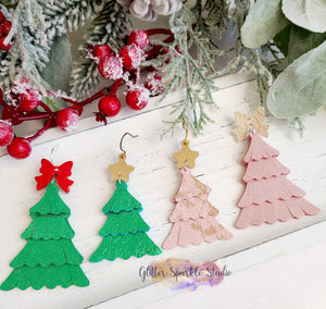 Quad Layer Fringed Christmas Tree with Star & Ribbon Toppers Earring or Pendant Steel Rule Combo Die