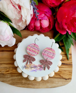 Pair of 2 inch Embossed Mirrored Swirl Lollipop with bow stick Dangling multi cut Steel Rule Die for petite earring or appliques