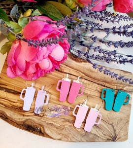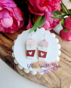 1.75 inch Pair of Mirrored Latte Coffee Cups with Hearts Dangling multi cut Steel Rule Die for petite earring or appliques