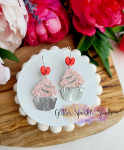 2 inch Pair of Cupcakes with Heart-shaped Cherries Dangling multi cut Steel Rule Die for petite earring or appliques