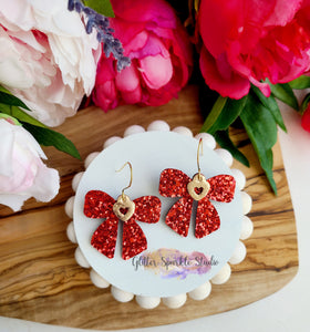 Pair of 1.5 inch Large Bows with Heart Lockets Dangling multi cut Steel Rule Die for petite earring or appliques