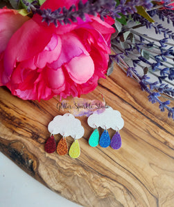 Pair of 1.5 inch Cloud with Raindrops Dangle Earring Steel Rule Die